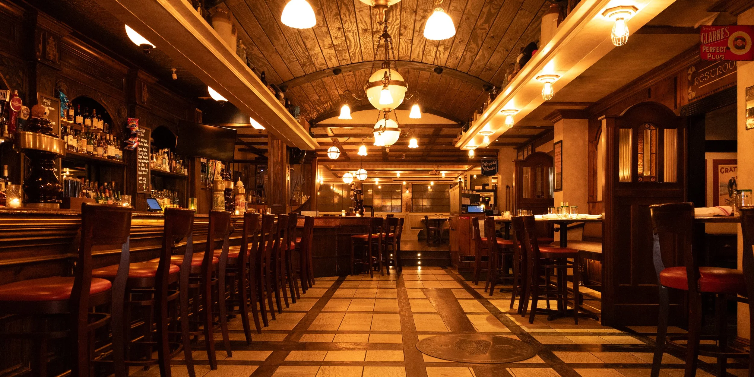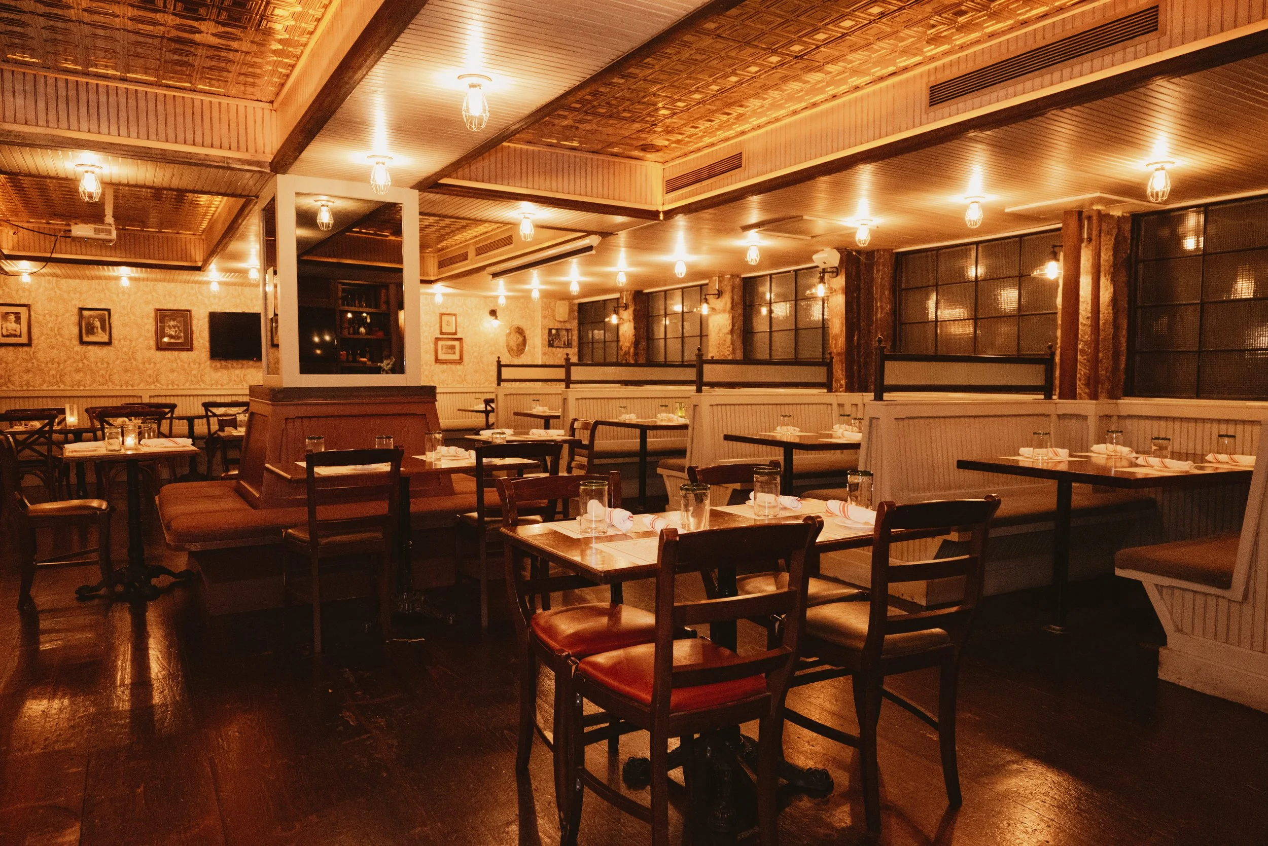 Our signature event space — rich in wood, comfortable lighting, and character. With pull-down screens ready for presentations or video, the Back Room adapts easily between seated dinners, corporate events, and stand-up receptions. It’s spacious enough to impress, warm enough to feel personal.
